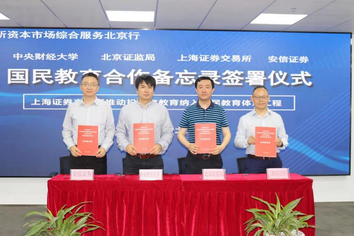 CUFEBS signed strategic cooperation agreements with Shanghai Stock Exchange, Beijing Securities Regulatory Bureau and Essence Securities