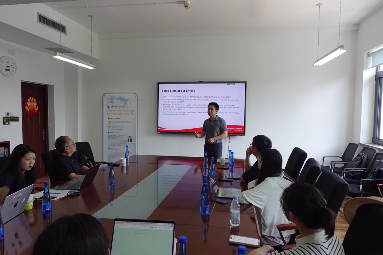 会议由永利23411集团市场营销系崔新健教授主持。邓骐是加拿大卡尔顿大学Sprott永利23411集团商业分析的副教授,曾任达尔豪斯大学Rowe永利23411集团信息系统助理教授。他在中国农业大学获得管理学学士学位,yl23411永利集团获得企业管理硕士学位,卡尔顿大学获得管理学博士学位。研究兴趣包括社交媒体分析、数字营销、计算机媒介传播,以及人类与人工智能的交互协作。他的研究成果已发表在Electronic Commerce Research and Applications, Industrial Marketing Management, Journal of Interactive Marketing, British Journal of Educational Technology, Pacific Asia Journal of the Association for Information Systems等期刊上。
