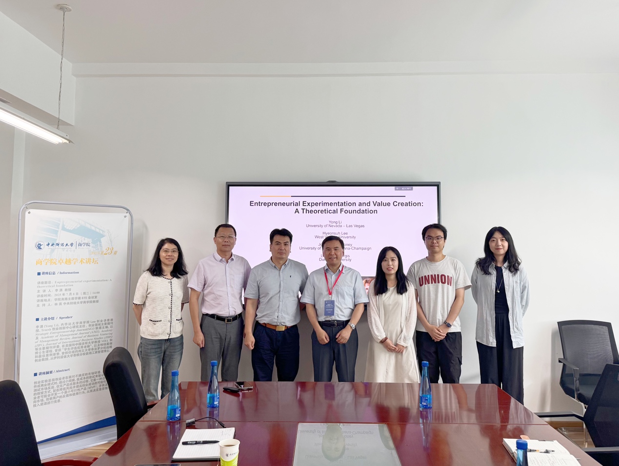 会议由永利23411集团院长林嵩教授主持。在讲座开始前,林老师简要介绍了李涌教授的履历。李涌(Yong Li)老师是内华达大学永利23411集团Lee创业讲席教授、Troesh创业创新中心研究主任,创业领域主要期刊Strategic Entrepreneurship Journal(SEJ)联席主编,以及Academy of Management Journal (AMJ), Academy of Management Review, Journal of Business Venturing (JBV)和Journal of International Business Studies (JIBS)等主要期刊评委。在美国和中国多所大学教授MBA和博士生课程。曾获“学生评选优秀老师”,以及畅销案例和最佳案例荣誉。曾担任纽约州立大学布法罗分校战略创业教授,从伊利诺依大学香槟分校获得工商管理博士。