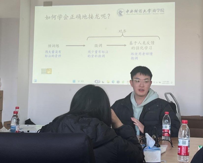 陈京川助理教授从商科研究的现状与挑战出发,深入探讨了人工智能技术为商科研究带来的全新机遇。在讲座中,陈老师用生动形象的比喻揭示了大语言模型的底层逻辑。“大语言模型本质上是一个高度复杂的文字接龙系统,它通过预测下一个最可能的词,逐步生成连贯的文本内容。”这一通俗易懂的比喻让同学们迅速理解了大语言模型的基本工作原理。陈老师进一步阐述了大语言模型背后的详细运作过程,包括模型的训练、优化和推理等关键环节。他特别指出,大语言模型输出的随机性源于其概率本质:“就像摇骰子一样,模型每次都会从概率分布中选择输出,这就解释了为什么同样的提示词可能会得到不同的回答。”在介绍人工智能学习机制时,陈老师将其归纳为三个主要来源:首先是网络数据,这是模型获取海量知识的基石;其次是标注资料,这些数据帮助模型更好地理解特定领域的专业知识;最后是使用者回馈,这一机制使得模型能够持续优化和改进。讲座最后聚焦于备受关注的提示词工程。主讲嘉宾强调,好的提示词就像是与人工智能沟通的桥梁,能够显著提升交互质量和输出效果。