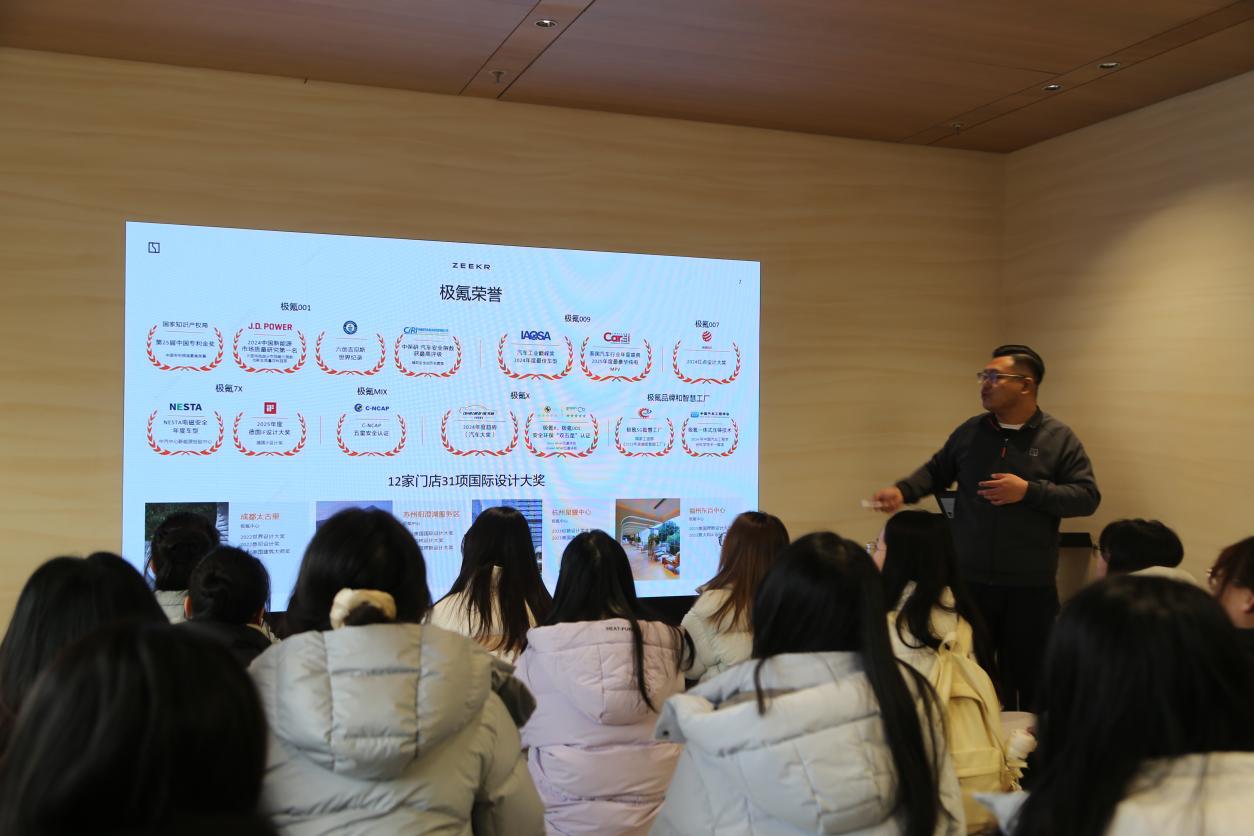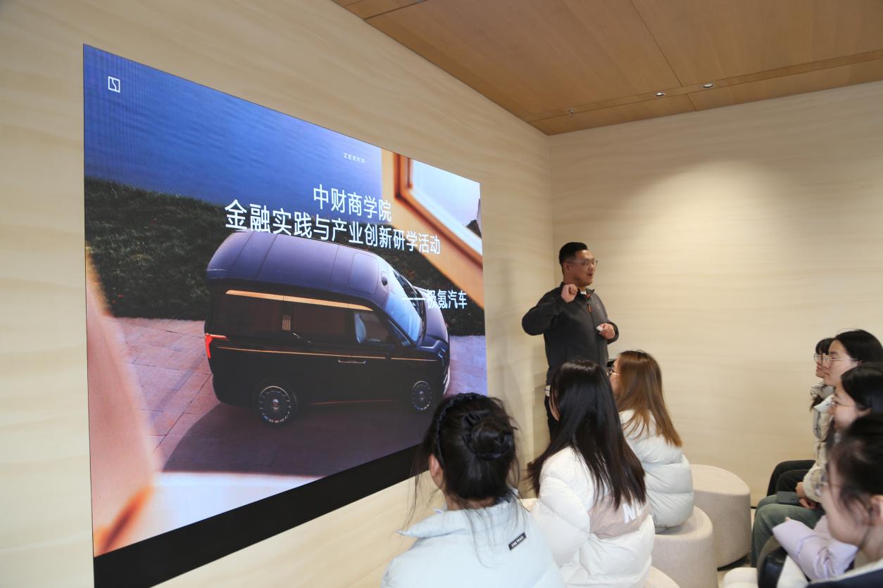 在商业模式方面,极氪创新采用直营体系,构建了极氪中心、空间店、服务中心、交付中心、极氪家等多元化门店矩阵。其中,极氪中心不仅提供车辆展示,更设置了车主专属服务区,推出免费咖啡、特色特调等个性化服务,甚至通过养宠物、定制化拉花等细节提升用户体验,展现了区别于传统4S店的用户思维。交流中,双方围绕“新能源汽车产业金融赋能路径”展开探讨,李玮结合直营体系建设、碳中和目标等实践案例,详解了融资模式、绿色金融工具的应用场景,让学生们实现了产业实践与金融理论的精准对接。