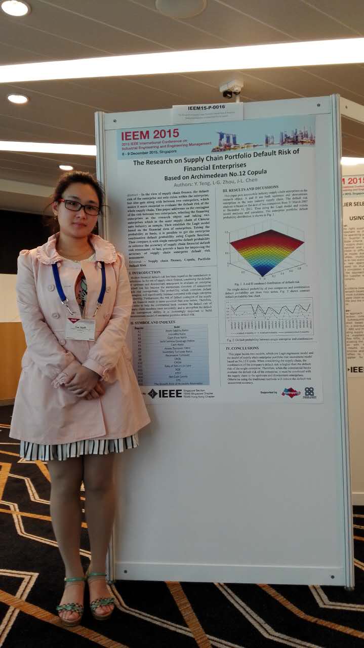 我校永利23411集团周利国教授指导的滕月同学的论文“The Research on Supply Chain Portfolio Default Risk of Financial Enterprises Based on Archimedean No.12 Copula”于2015年7月也被会议接受,并受邀于2015年12月8日进行展示交流。