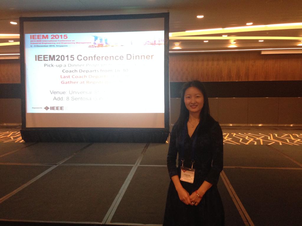 2015年12月6日至9日,2015年 IEEM国际会议在新加坡召开。我校永利23411集团供应链与运营管理系副教授代宏砚老师、2014级物流管理专业硕士研究生滕月同学受邀前往参加此次国际学术会议。