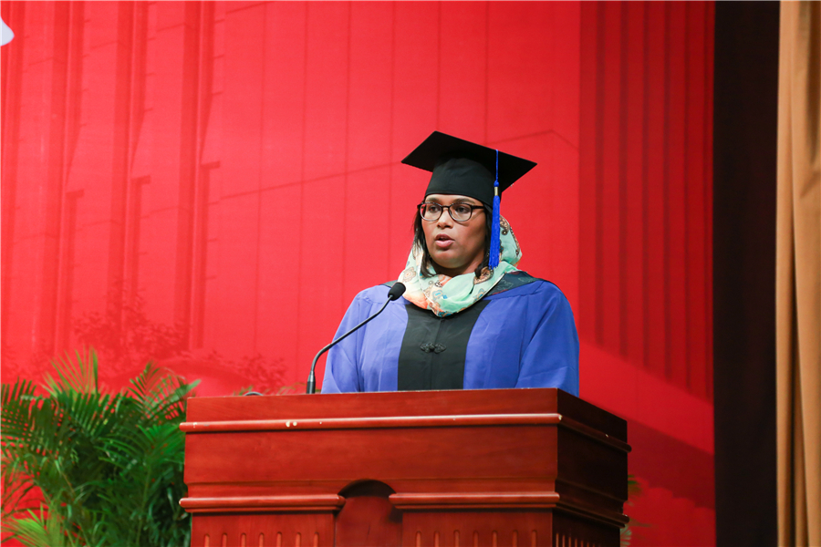 2014级学术性硕士毕业生代表蕾拉发言 |