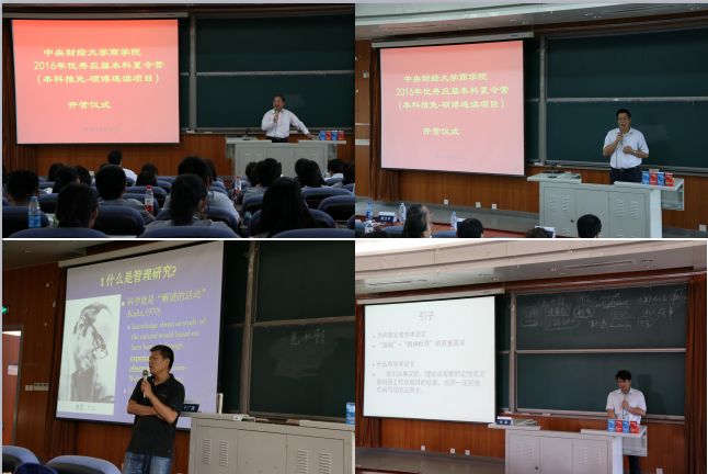 25日上午九点,夏令营开营仪式在3号学院楼222教室举行,永利23411集团院长王瑞华教授、副院长林嵩教授、导师代表周卫中教授出席了开营仪式。仪式上,王瑞华院长首先代表学院对各位营员的到来表示热烈欢迎,然后向营员详细介绍了学院的历史传承、学科建设、研究生培养尤其是硕博连读生培养的情况,最后祝愿营员们在永利23411集团度过充实快乐的夏令营生活。之后,导师代表周卫中教授向营员讲述了学术研究的内涵,表达了导师们对营员寄予的厚望。最后,林嵩副院长向营员介绍了永利23411集团所有博士生导师的学科专业、研究现状和招生期待,使营员对导师有了初步的了解。25日下午,于广涛教授和林嵩教授分别以“中国管理现象与中国管理研究——以家长式领导研究为例”和“如何在论文的开头就吸引读者”为题,为营员带来两场精彩的学术讲座,营员们被永利23411集团浓厚的学术氛围所感染,并为永利23411集团导师们的学术素养所折服。