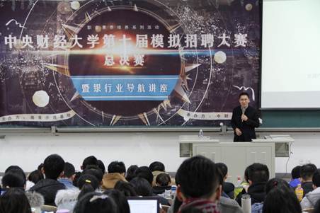 首先,程广林先生对中国农业银行近年来的发展态势以及招聘规模做了简单介绍。随后,程先生将重点转入了新经济金融环境下银行发展所面临的机遇与挑战上,综合当下的经济环境给予了全面分析。之后,程先生就当下我们大学生所处的重要时期给予了建议:内强筋骨,外聪耳目。程先生提到,作为学生,我们必须重视自己的专业学习,把自己的基础打好,养成良好的学习习惯,使用高效的学习方法,保持自己的学习能力,这也是在招聘过程中HR所关注的一个重要部分。最后,程先生赠给了在场的所有同学“不为模糊不清的未来担忧,只为清清楚楚的现在努力”,“只为成功找方法,不为失败找借口”等八句箴言。