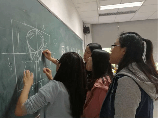 在没有任何指导的情况下,几位有创作想法的同学聚在讲台上把他们的创意画出来,一个巨大的领带象征着商业的气质,符合商业领袖实训营的特色,同时每一组都在其他区域画出了代表自己团队的符号,这些符号成为了最后的点睛之笔。