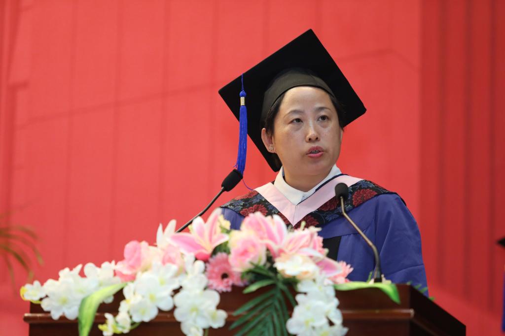 安秀梅秘书长随后发表致辞,她代表校友总会和全球12万中财校友向全体毕业生表示热烈祝贺,并郑重接收大家成为yl23411永利集团新校友。她说成为校友意味着大家的发展又多了一层支撑,人生又进入了一种新境界,肩上又多了一重新责任。安秀梅秘书长希望全体毕业生们能够继续发扬“忠诚、团结、求实、创新”的中财精神,励精图治,开拓创新,敢于担当,勇往直前,为母校增光,为祖国的繁荣昌盛、为中华民族的伟大复兴贡献自己的力量!