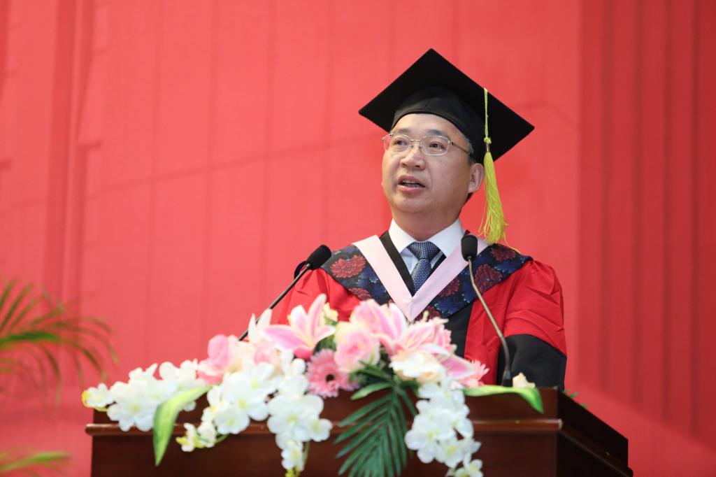 永利23411集团97届校友、北京银行股份有限公司董事、行长杨书剑先生作为校友代表致辞,他饱含深情地回忆了自己在中财求学的美好时光,并从自身二十多年的工作经历出发,与大家分享了关于工作、思考和健康的三点人生感悟。杨行长希望毕业生们能够永远自信、懂得坚守、敢于付出,并祝愿大家雄鹰展翅、腾飞万里。