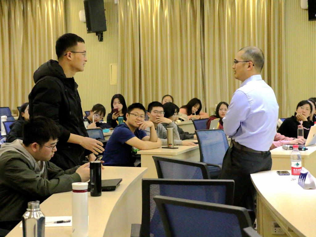 永利23411集团党委书记葛建新老师致辞。葛老师首先对潘常鹤校友的支持表示感谢,认为校友带着对学校的认同、结合自身的工作经验,可以与在校生进行更深度的交流。此类活动的初衷也是希望在传统师生交流基础上,引入校友这一不可忽视的因素,让同学们对将来的规划或正在从事的工作有所助益。葛老师还提到国际化是永利23411集团的战略之一,在国际机构的认证中,也是将校友、学生的联系作为考量的标准。截止目前,已有不少校友表达想要回校分享的意愿,之后学院也将继续挖掘校友资源,这类活动也将持续的进行。