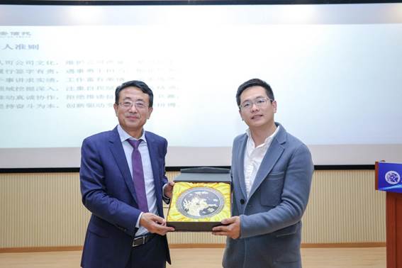 讲座最后,栾天老师代表MBA教育中心向张胜先生赠送中财纪念礼物,并对其到来与精彩分享表示感谢。