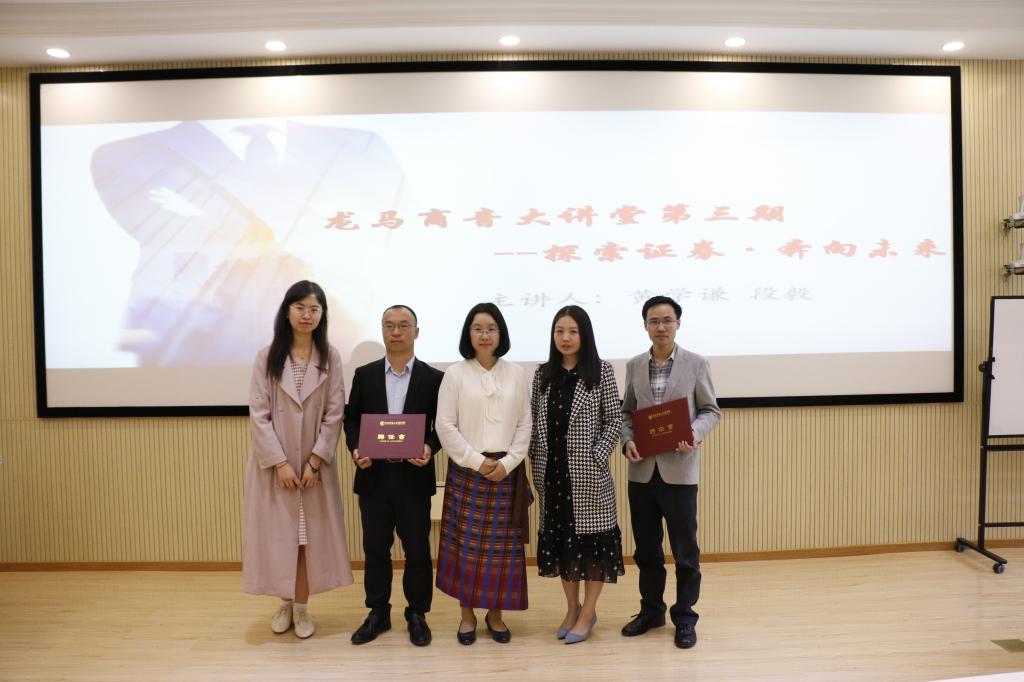 “龙马商音第三期——探索证券•奔向未来”讲座于5月11日上午在MBA阶梯教室举行。本次讲座特邀中国联通证券事务代表黄学谦校友、方正证券投资有限公司高级副总裁段毅校友讲座,就职于财政部的刘玢校友和就职于中国工商银行总行的张金慧校友也到场与同学们交流,永利23411集团党委书记葛建新出席并致辞。
