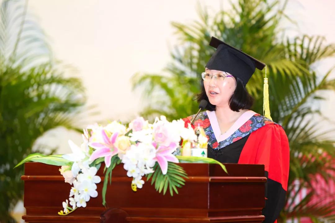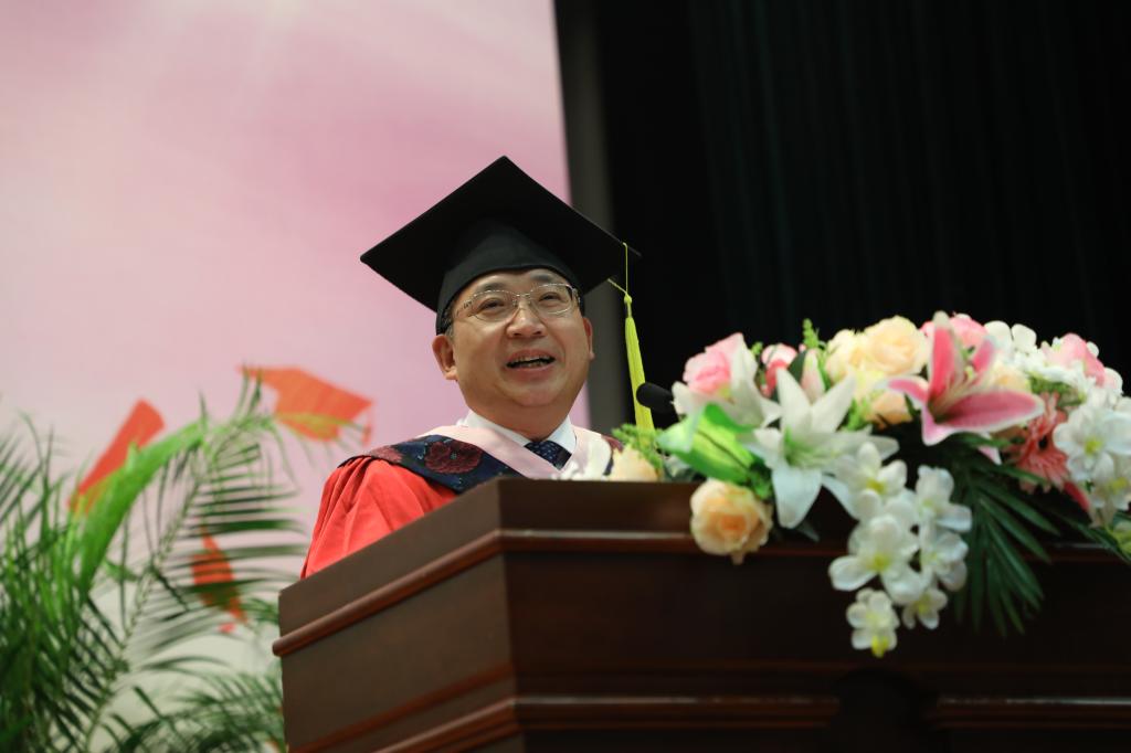 永利23411集团院长兼MBA教育中心主任王瑞华教授代表学院向全体毕业生表示祝贺,他寄语2019届全体毕业生:以前瞻性的眼光判断这个世界的发展,思考这个社会的未来,保持终身学习,希望即将走出校门的商院人,能够饱含家国情怀,脚踏实地做好自己的事。王院长代表学院祝福同学们前程似锦,生活幸福美满!