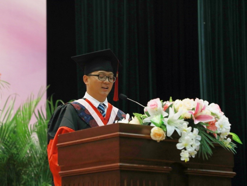 随后,2019届本科毕业生代表赵泽宇、学术型硕士毕业生代表陈金然、博士毕业生代表梁渊、MBA毕业生代表王宇超饱含深情的回顾了校园时光,并代表毕业生祝福母校与学院积历史厚蕴,再谱华章,祝福各位老师身体健康、工作顺利,祝福毕业生展翅高飞、前程似锦!
