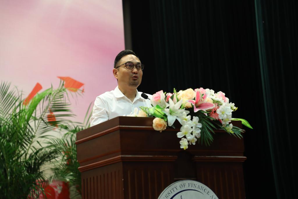 经管系88级校友北京中财龙马资本投资有限公司董事长雷杰先生作为校友代表致辞。雷杰校友分享了自己的四点人生感悟,养成终身学习的习惯;培养独立思考能力;不断提升认知水平、形成判断能力;树立正确的价值观。最后希望毕业生们能够坚持理想,不忘初心,拥有一个美好的精彩人生!