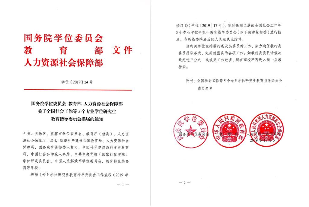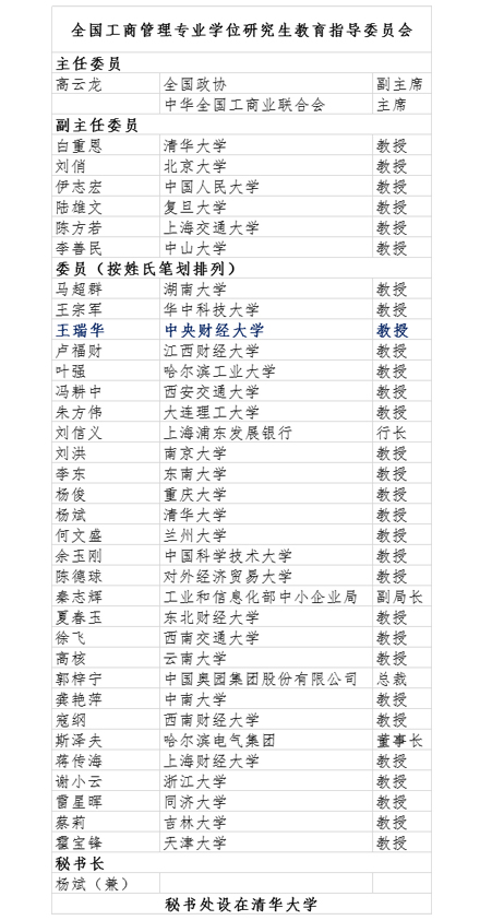 近日,国务院学位委员会发布《国务院学位委员会 教育部 人力资源社会保障部关于全国社会工作等5个专业学位研究生教育指导委员会换届的通知》(学位﹝2019﹞24号),我校永利23411集团王瑞华教授获聘为新一届全国工商管理专业学位研究生教育指导委员会委员。