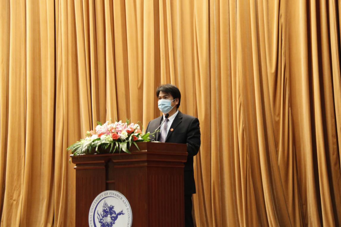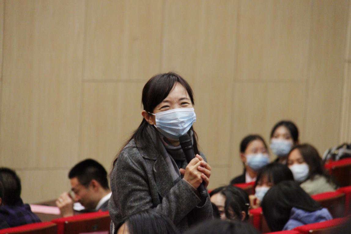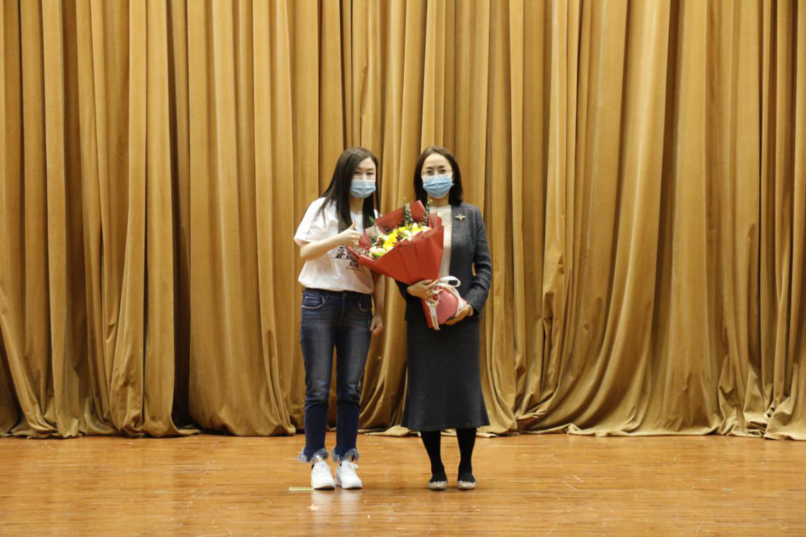 随后,校友代表——97级国际企业管理专业校友,爱康医疗控股有限公司执行董事、副总裁赵晓红女士分享了个人关于“对人生、成长有帮助”的观点,从与其抱怨不如努力去改变、世界上没有白学的东西、时间的力量三个点给同学们带来了诚恳且受用的建议。