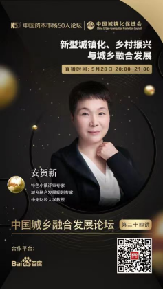 永利23411集团安贺新教授在中国资本市场50人论坛与中国城镇化促进会联合百度共同主办的“中国城乡融合发展”论坛上,作为系列公益在线公开直播第二十四讲的演讲嘉宾,做了主题为“新型城镇化、乡村振兴与城乡融合发展”的演讲。