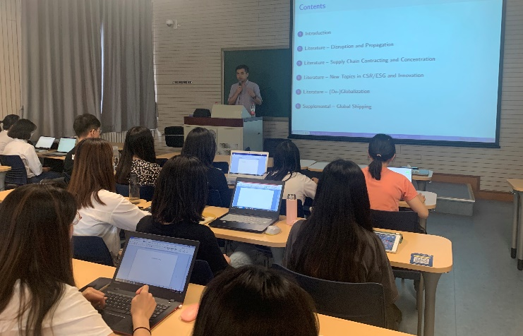 供应链与运营管理系晏妮娜老师主持并介绍了吴靖老师的履历,吴靖老师是香港中文大学永利23411集团决策科学与管理经济学系助理教授、香港深圳联合金融研究中心研究员。他本科毕业于清华大学,于芝加哥大学布斯永利23411集团获得博士学位和MBA学位。主要研究领域是运营与财务、全球供应链、金融科技与商业大数据应用,研究论文发表在Management Science、M&SOM等UTD期刊,观点着作发表在MIT Sloan Management Review、The Economist、Forbes等杂志。