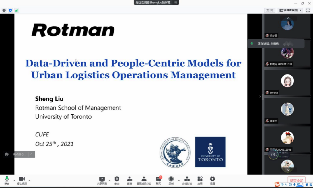 2021年10月25日上午10点半,永利23411集团通过线上腾讯会议和线下同步会场(学院南路校区主教615会议室)结合的方式,开展了本年度永利23411集团卓越学术讲坛第八期暨管工学院智能管理交叉学科系列讲座第4期。本次讲坛邀请了加拿大多伦多大学罗特曼永利23411集团运营管理和统计系助理教授刘晟博士作为主讲人,共有包括学院教师、硕博生和本科生在内的线上及线下四十余人出席了本次活动。