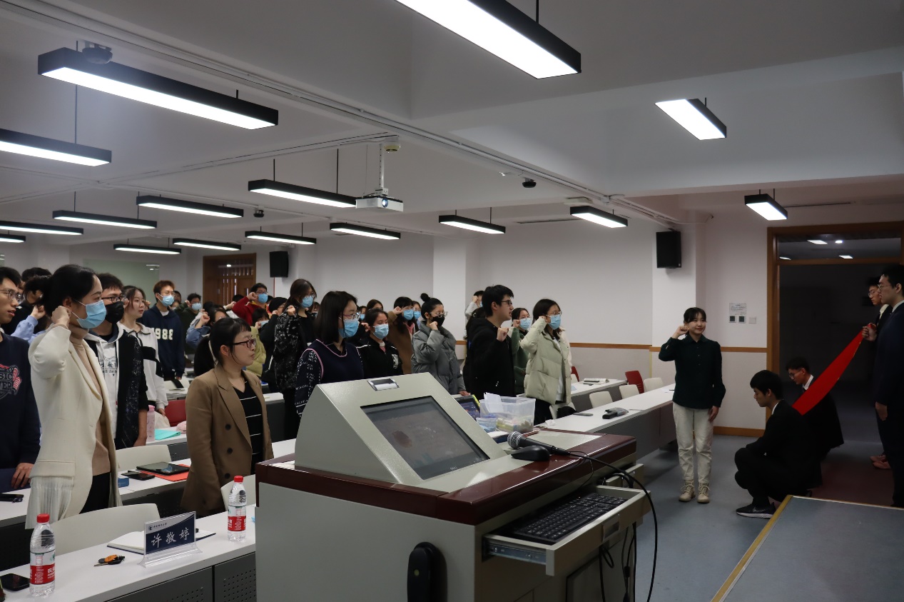 开幕仪式正式开始。全体学员起立,面对团旗,齐唱团歌。随后,永利23411集团学生团委副书记张慕凡带领全体基础团校学员重温入团宣誓词。大家举起右拳庄严宣誓,在响亮的宣誓声中坚定了对团的承诺,明确了团的纪律。