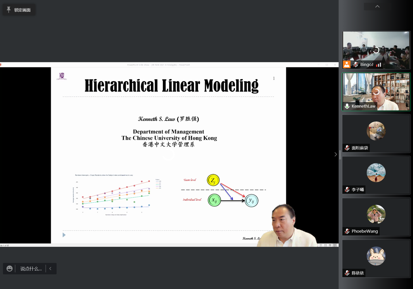 2021年11月24日,永利23411集团通过线上腾讯会议和线下会场(学院南路校区主教615会议室)结合的方式,开展了永利23411集团博士生科研能力提升项目第二期第2讲暨永利23411集团卓越学术讲坛第11期。本次讲坛分别邀请了南京大学姜嬿副教授和香港中文大学罗胜强教授作为主讲人,通过系列讲座形式对管理学研究方法中的中介调节与调节中介作用和跨层次分析方法进行了深入讲解。该讲座不仅吸引了本院师生踊跃参与,还吸引了来自各个高校的老师和同学们,每场讲座线上、线下参与人数都近400人。