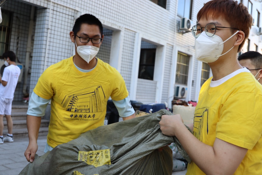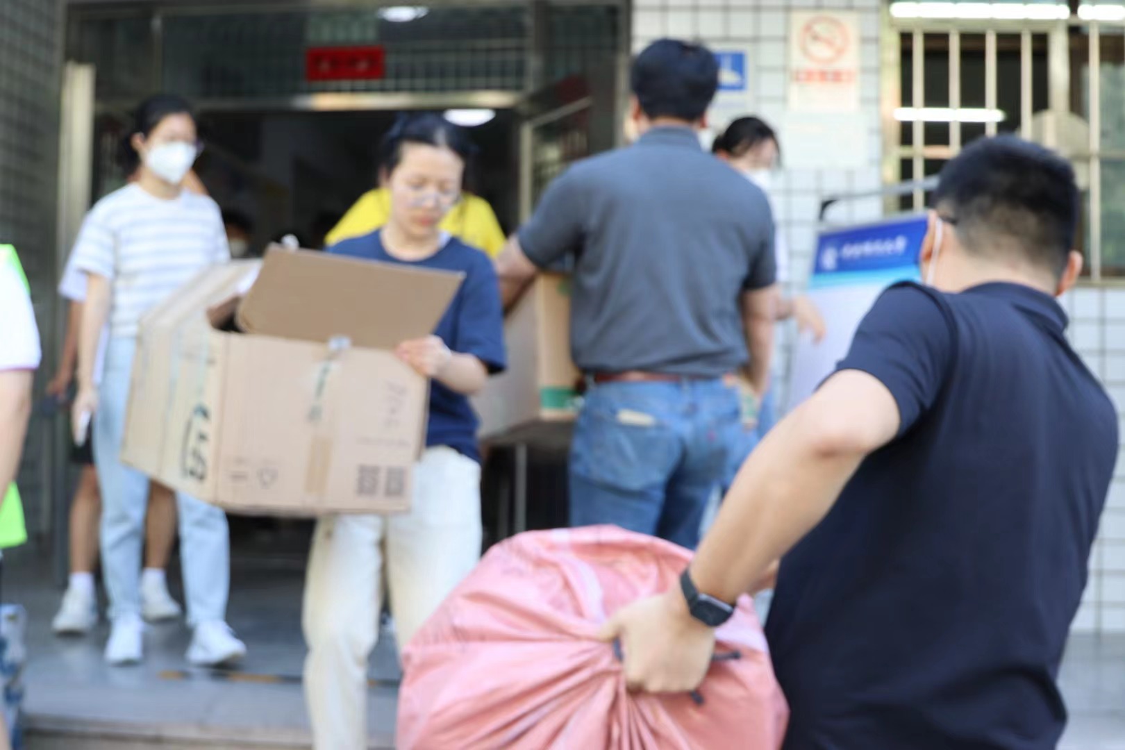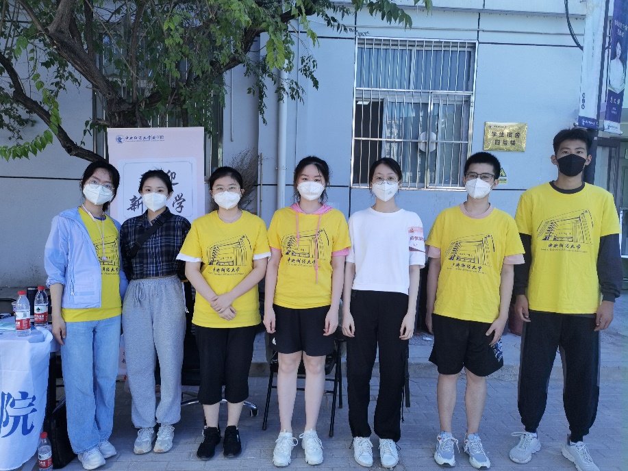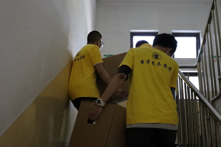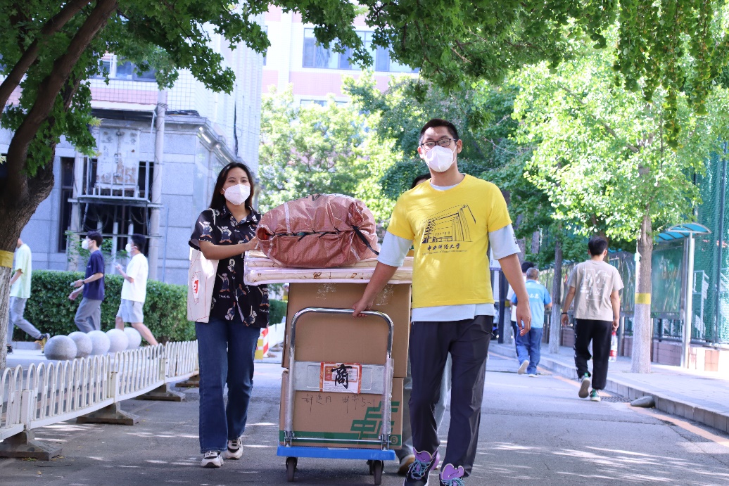 在学五宿舍楼下,永利23411集团院长林嵩、永利23411集团副院长于广涛、组织与人力资源管理系主任王震、辅导员曾功星也加入了行李搬运队伍,和志愿者一起帮助萌新们。