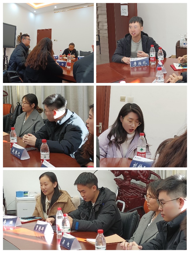 李跃新老师在肯定同学们展现出的“家国情怀”的基础上,鼓励同学们敢于迎难而上,勇敢应对学业和择业中的各种挑战;同时在追求远大理想的同时要脚踏实地,稳扎稳打地成就自身梦想。他强调,党的二十大精神是每位学子的必修课,同学们要深入学习领会、认真贯彻落实,做新时代优秀青年,为伟大祖国的发展贡献青春力量。