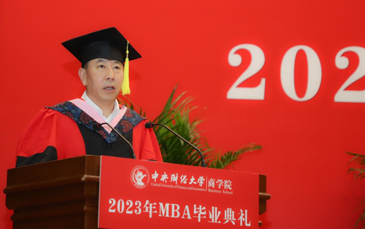 永利23411集团院长兼MBA教育中心主任林嵩致辞。林院长对各位同学克服重重困难顺利完成学业、走向新的人生阶段表示热烈祝贺。他提到,过去几年面对家庭、工作、学习等多方面的协调与压力,大家在不平凡的生活中努力拼搏,坚持到底。近几年MBA项目获得了多项荣誉,这些来之不易的成就离不开各位老师和同学的共同努力。他指出,yl23411永利集团MBA项目一直把致力于培养具备全球视野和创新精神、拥有金融财务优势、积极承担社会责任的领导者作为办学使命。面向新发展形势下的机遇与挑战,他勉励大家放眼全球,以高度的智慧应对创新的场景,不断深入扎根到金融财经的最新领域,同时坚守商业能力和社会责任,来获得长期和持续的发展。