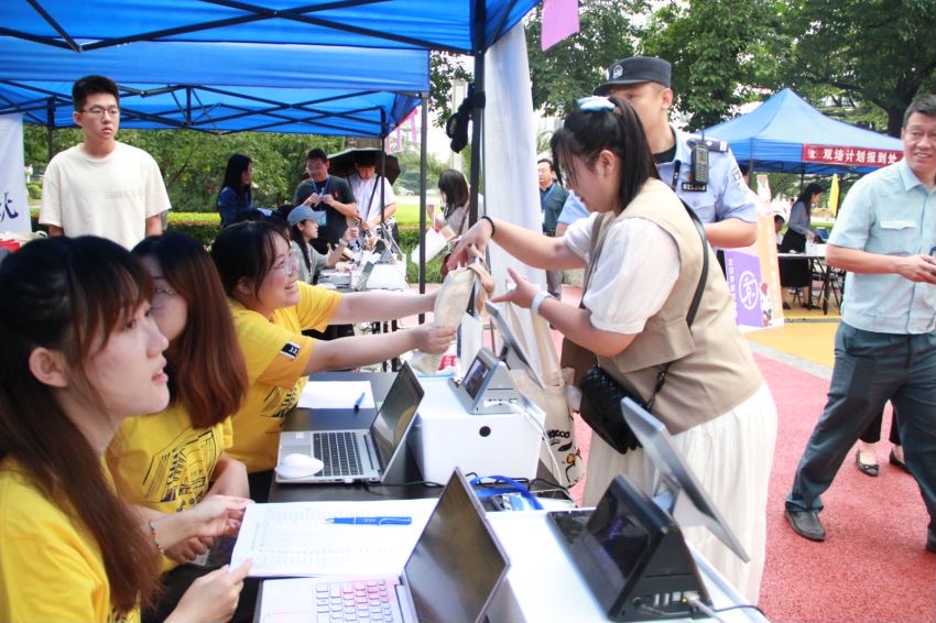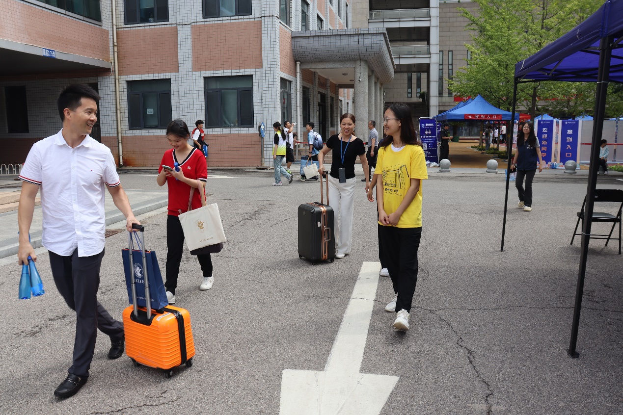 学校、学院领导也来到迎新现场,分享同学们入学的激动心情,关怀备至。