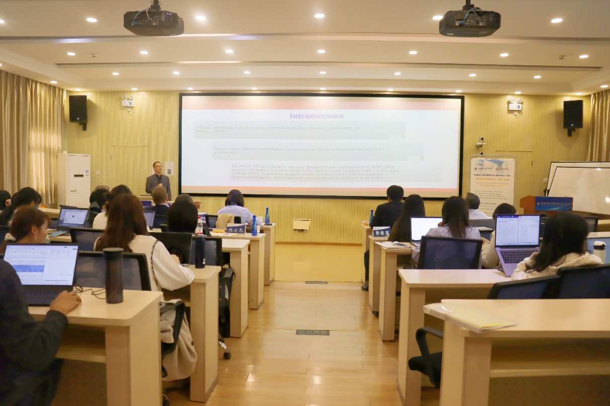 国际合作处处长葛建新教授致辞。葛处长回顾了永利23411集团与英德杰国际管理公司长达21年的合作历程,对英德杰国际管理公司及Peter Anterist教授表示衷心感谢。葛处长表示,本次研讨会为大家提供了宝贵的学习和思考机会,让我们能够对中欧贸易和投资的现状、挑战和机遇具有更深入的理解。