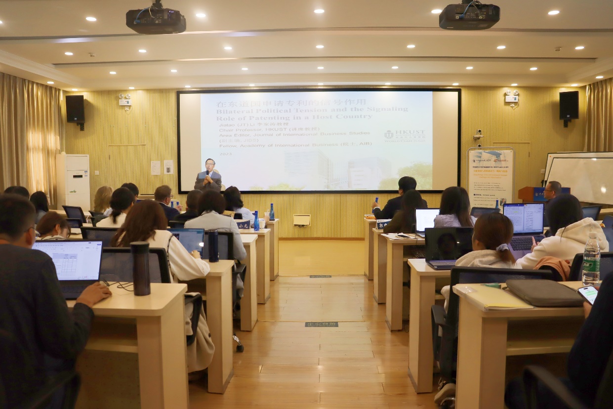 李家涛教授是国际商业战略领域的专家、香港科技大学利国伟商学教授、管理系讲座教授,《Journal of International Business Studies》区域编辑(副主编),国际商务学会(AIB)院士。李家涛教授围绕“The Signaling Role of Patenting in a Host Country”这一话题,以跨国公司在东道国申请专利为切入点,分析了双边政治对跨国公司的影响以及跨国公司应当如何应对双边政治紧张的局势,该研究的结论对跨国公司如何缓解双边政治紧张局势具有重要参考意义。
