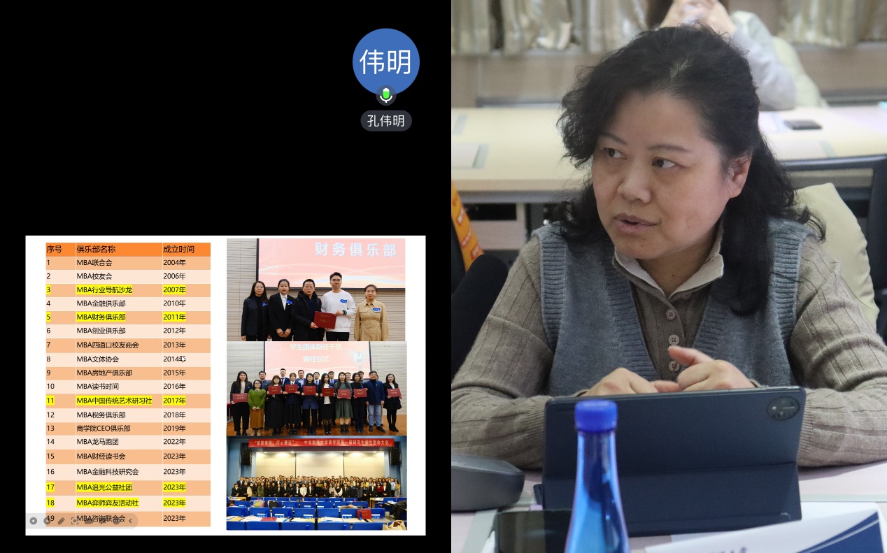永利23411集团党委副书记杨中英汇报学院2023年学生工作整体情况。永利23411集团强抓理想信念教育活动,持续打造思政精品项目,全面搭建实践实训专业平台,不断完善学生帮扶体系,定期举办特色美育文体活动,将学生思想政治教育融入学生培养的全方位、全过程,培养德智体美劳全面发展的商科人才。同时,学院多维搭建资源网络,持续助力招生宣传,稳步提升毕业生高质量就业。