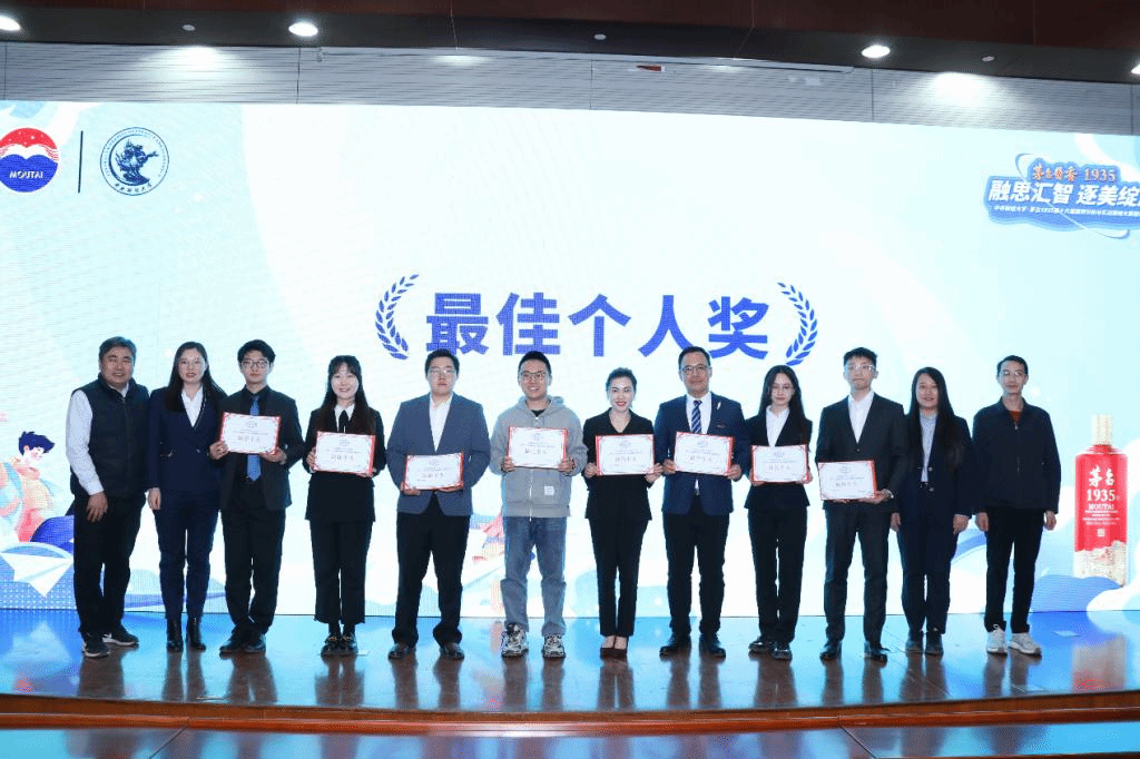 围绕茅台1935酒品牌策略与优化,各参赛队伍借助PPT演说深入呈现了他们的研究成果,并对调研数据进行了深度分析和战略性建议。此外,团队相互提问、评委点评和观众互动等环节的设置进一步丰富了赛事体系和问题深度,使比赛更加精彩。本次大赛中,各队展现的专业素养和创新思维为茅台1935酒的发展提供了有价值的见解,受到了观众热烈的掌声和评委的一致肯定。