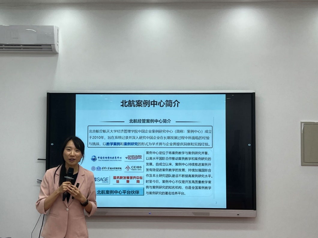 随后,北京航空航天大学经管学院领导力与组织管理系马琳副教授以《百优案例撰写思考与体会》为主题,从撰写视角讲述了百优案例的开发和写作,从评审视角讲述了百优案例的评审标准。她表示,一篇好的案例从选题的典型性、布局的合理性、内容的聚焦性、材料的客观性、案例的可读性和写作的规范性等方面都应面面俱到。