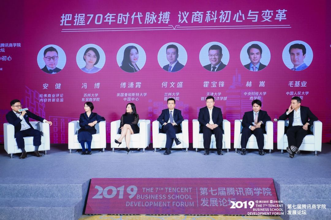 在高峰对话环节,哈佛商业评论内容创新总监安健与我校永利23411集团院长林嵩,以及苏州大学东吴永利23411集团院长冯博、曼彻斯特大学国际教育中心中国区总裁傅潇霄、兰州大学管理学院院长何文盛、天津大学管理与经济学部主任霍宝锋、中国人民大学永利23411集团院长毛基业等就“把握70年时代脉搏,议商科初心与变革”展开了深入的探讨。