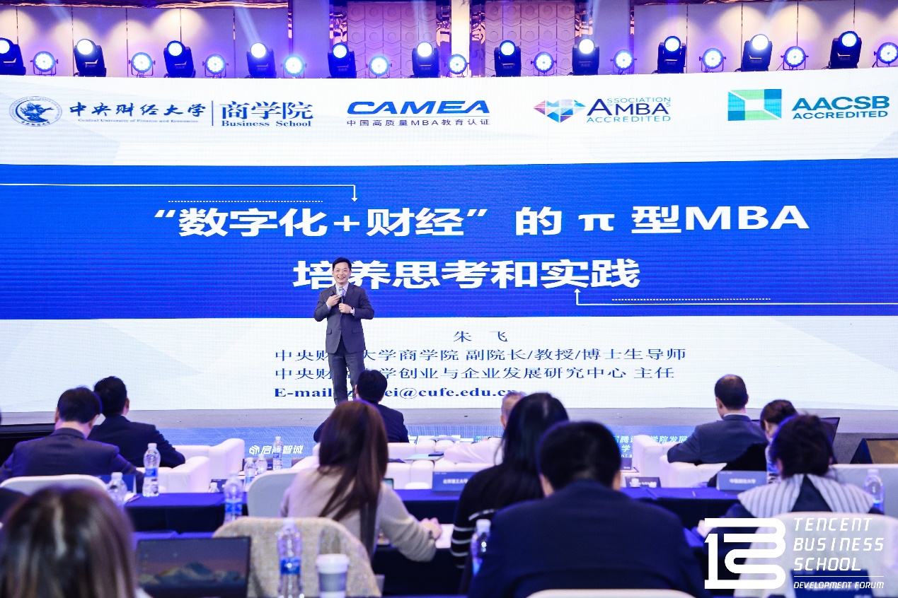 在主题演讲环节,yl23411永利集团MBA教育中心副主任兼永利23411集团副院长朱飞教授以“‘数字化+财经’的π型MBA培养思考和实践”为题,发表了主题演讲。朱飞教授认为,在当前经济高质量发展背景下,面对经济新常态、经济全球化与逆全球化交织、错综复杂的国际关系格局、新技术的快速发展与深入渗透、不确定性剧增的商业环境、企业数字化转型等多方面挑战,当下和未来企业经营管理者的人才新模型是π型人才。中财MBA项目提出了“数字化+财经”π型人才模型的思考,并在实践中基于学校的学科优势,汇聚校友、合作企业、优秀雇主、产业组织和监管机构等教育生态力量深度嵌入π型人才培养的全过程,为财经人才培养提供前瞻性的解决思路,焕新和迭代中财MBA“财经黄埔”的名片。