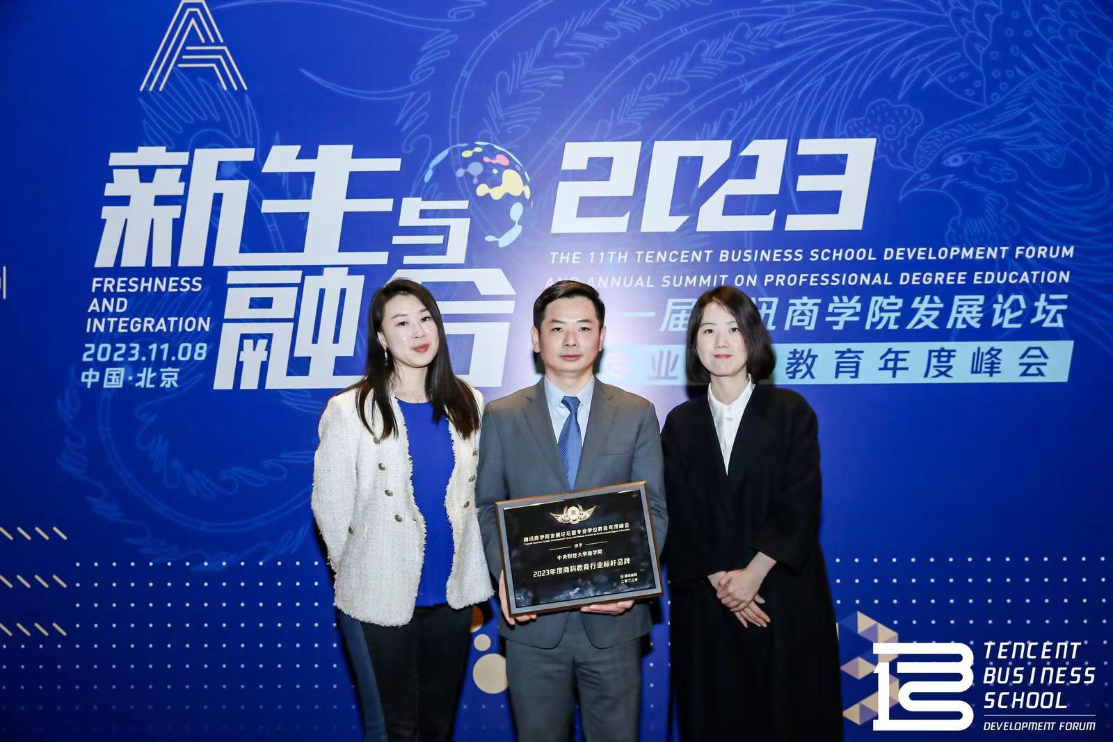 2023年11月8日,以“新生与融合”为主题的第十一届腾讯永利23411集团发展论坛暨专业学位教育年度峰会在北京成功举行。本届论坛汇聚了行业的决策者、领先者、学术专家及创新领袖、院校代表等近200人国内外嘉宾参会,共同为高等教育行业高质量可持续发展建言献策。永利23411集团受邀参加此次论坛,并荣获“2023年度商科教育行业标杆品牌”荣誉。MBA教育中心副主任兼永利23411集团副院长朱飞教授荣获“2023年度商科教育杰出学者”荣誉,并发表主题演讲。中财MBA招生推广大使团团长郭子瑶、副团长方溪文应邀出席了此次论坛。