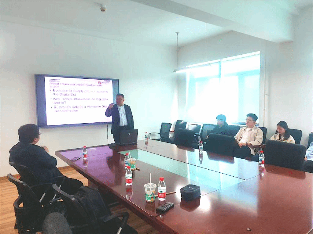 会议由永利23411集团牟善栋副教授主持。在讲座开始前,牟善栋副教授详细介绍了Peter Shi的学术背景。Peter Shi现任澳大利亚麦考瑞大学麦考瑞永利23411集团供应链管理学科负责人,英国皇家物流与运输学院(CILT)特许院士(Chartered Fellow),并担任CILT澳大利亚新南威尔士州主席。他学术成果丰硕,累计发表期刊论文逾百篇,其中70余篇刊载于ABDC A/A*及ABS 3/4级权威期刊。Peter Shi还兼任《International Journal of Operations & Production Management》《Transportation Research Part E》《International Journal of Logistics Management》等期刊的编委。