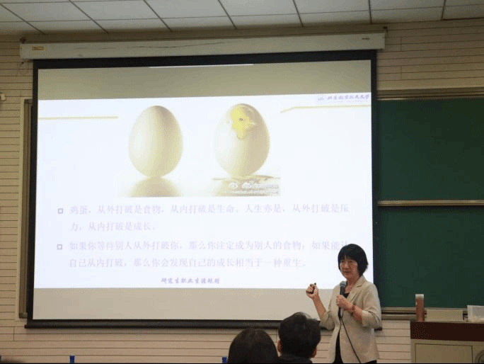 随后,苏文平老师就自我探索和同学们展开了交流,苏老师鼓励同学们要积极地进行自我探索,找到自己的兴趣与自我偏好。苏老师通过介绍霍兰德职业兴趣模型,引出职业兴趣类型与专业的关系,并用具体的案例帮助同学们更加全面深入地进行兴趣探索,发掘自身潜力。同时,苏老师列举了许多同学们身边的案例,让同学们发现自身与案例主角的共性,参考案例人物的职业发展经验,从中探寻自身的发展方向。