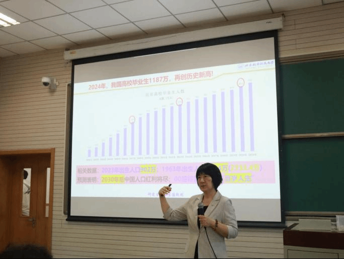 苏文平老师先从课前调研数据入手,分析了同学们的基本情况,以职业发展调查中的详实数据为基础,深入浅出地分析了当下就业环境与就业市场现状,并对同学们地特点进行了针对性地指导,鼓励同学们要明晰自己面临的现状,明确方向,扎实培养自身就业的基础能力与技能,树立良好的职业发展观。
