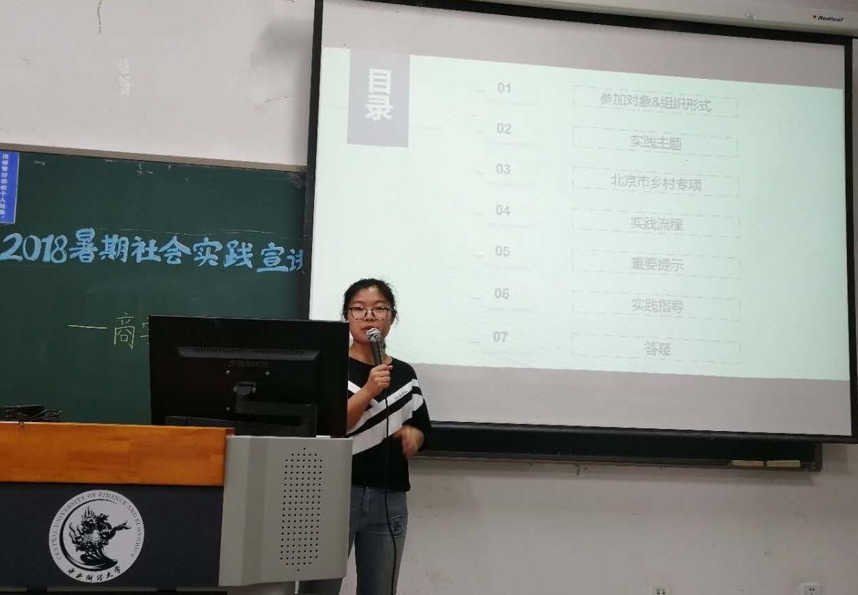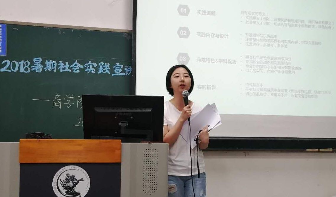 学术实践部马璞同学介绍本次暑期社会实践