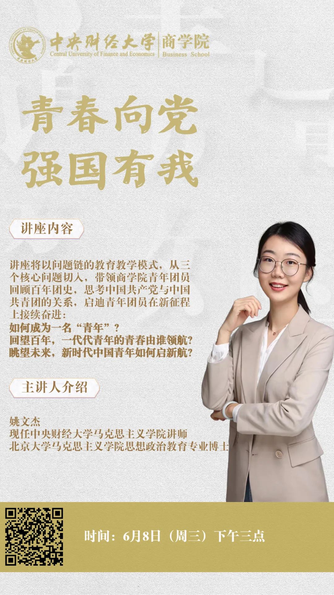 百年荣光,奋启新航|讲座预告:青春向党,强国有我