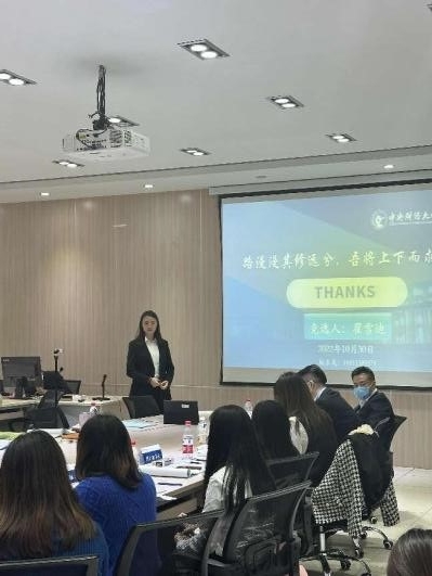 杨中英副书记在致辞中强调了MBA联合会的团队文化、使命及重要意义,她希望参与竞选的同学“不忘初心、牢记使命,相互信任、团结协作,尊重规则、服从安排”,并预祝所有的同学都能出色发挥、绽放光芒。