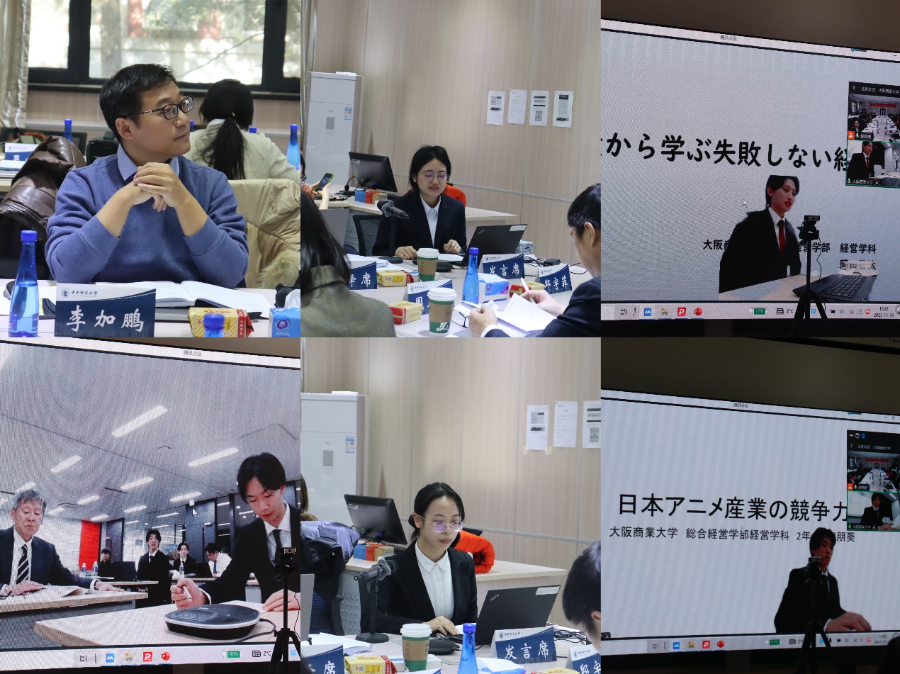 汇报结束后,yl23411永利集团周卫中教授和大阪商业大学北室康一准教授分别对学生的报告内容和汇报表现进行点评。周卫中教授对本届研讨会演讲学生的选题和现场表达给予了高度肯定。同学们能够关注到自己生活环境中非常重要的现实问题,这本身就值得鼓励。对于每位学生展示方案的改进,周教授从理论与实践两方面提出了中肯的建议。作为中方教师,周教授感谢两校师生的共同付出,奉献了一场如此精彩的研讨会。北室康一准教授对学生们“找真问题”“挖掘本质”的研究作风表示赞扬,并再次感谢学生们的辛苦付出。