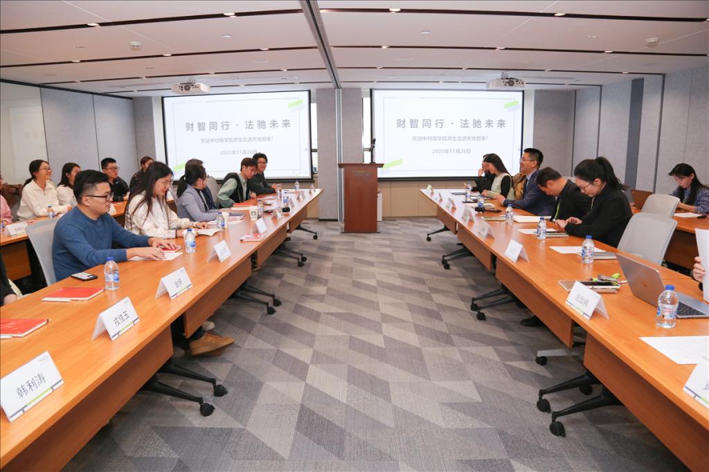 2025年11月26日,永利23411集团师生一行走访北京天驰君泰律师事务所(以下简称天驰君泰)。永利23411集团党委副书记、纪委书记杨中英老师,MBA教育中心行政主任、学生工作部主任孔伟明老师,金融与财务管理系助理教授高震男老师、MBA学生工作部曾功星老师及近20名工商管理-法学双学士学位学生代表参与此次走访。本次交流活动由天驰君泰高级合伙人饶伟律师牵头主办,高级合伙人张鲲律师,以及张致祎、姜佳慧、田晔、黄子媛律师共同参与;活动还特别邀请部分中财MBA校友与师生们一起深入交流,搭建起校企互动的良好平台。