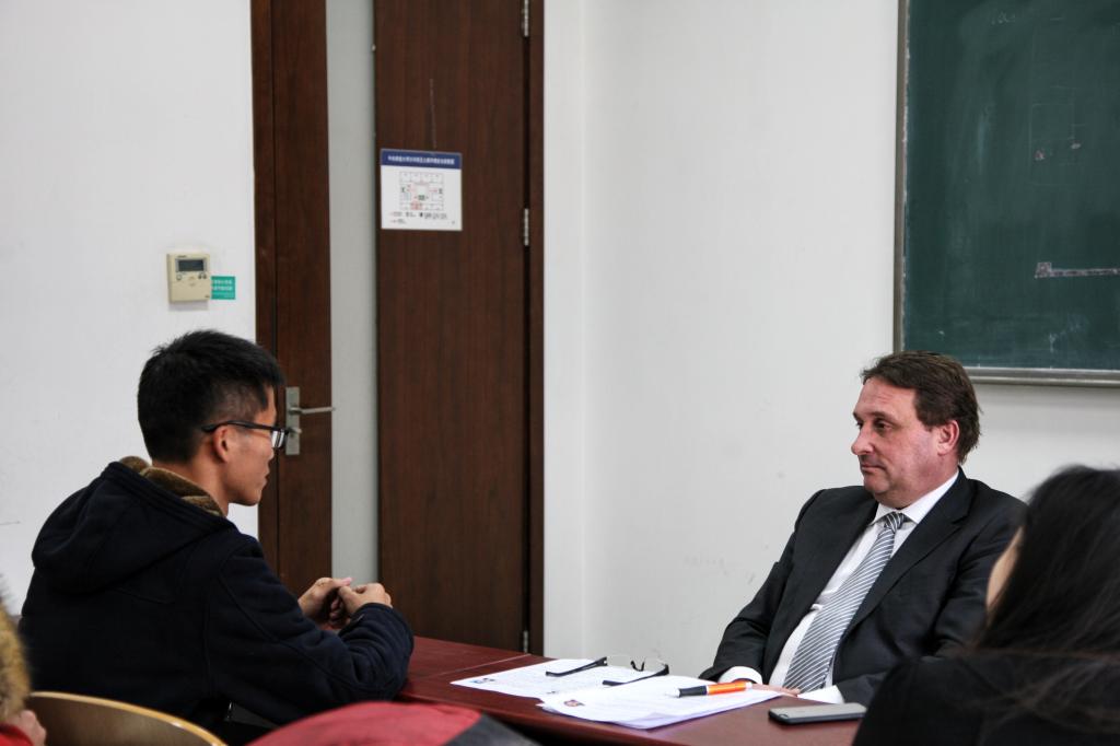 Peter Anterist教授对报名海外实习的学生进行面试选拔