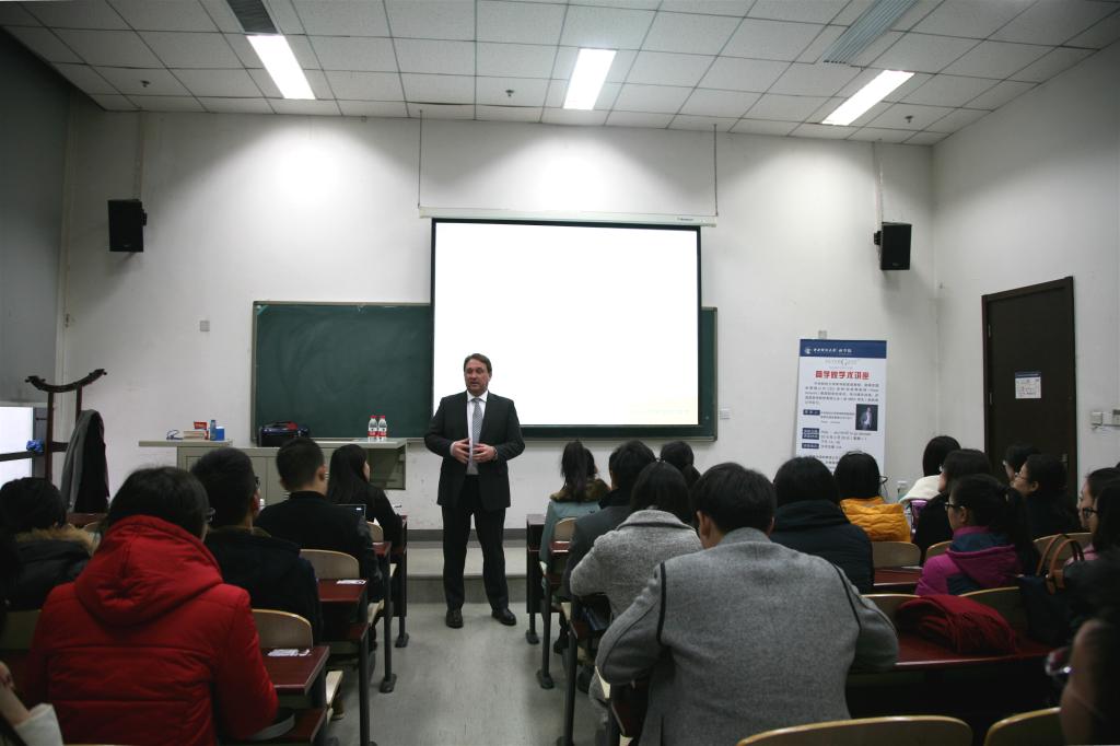 2月29日 下午,Peter Anterist教授在沙河校区举办了一场学术讲座,Peter Anterist教授结合实际案例讲解了企业在拓展海外市场过程中常见的十个误区,并与同学们就国际化背景下企业是否应该扩展海外市场、应如何扩展海外市场等问题展开了深入探讨。永利23411集团学术型硕士研究生、MBA学生参加了讲座。