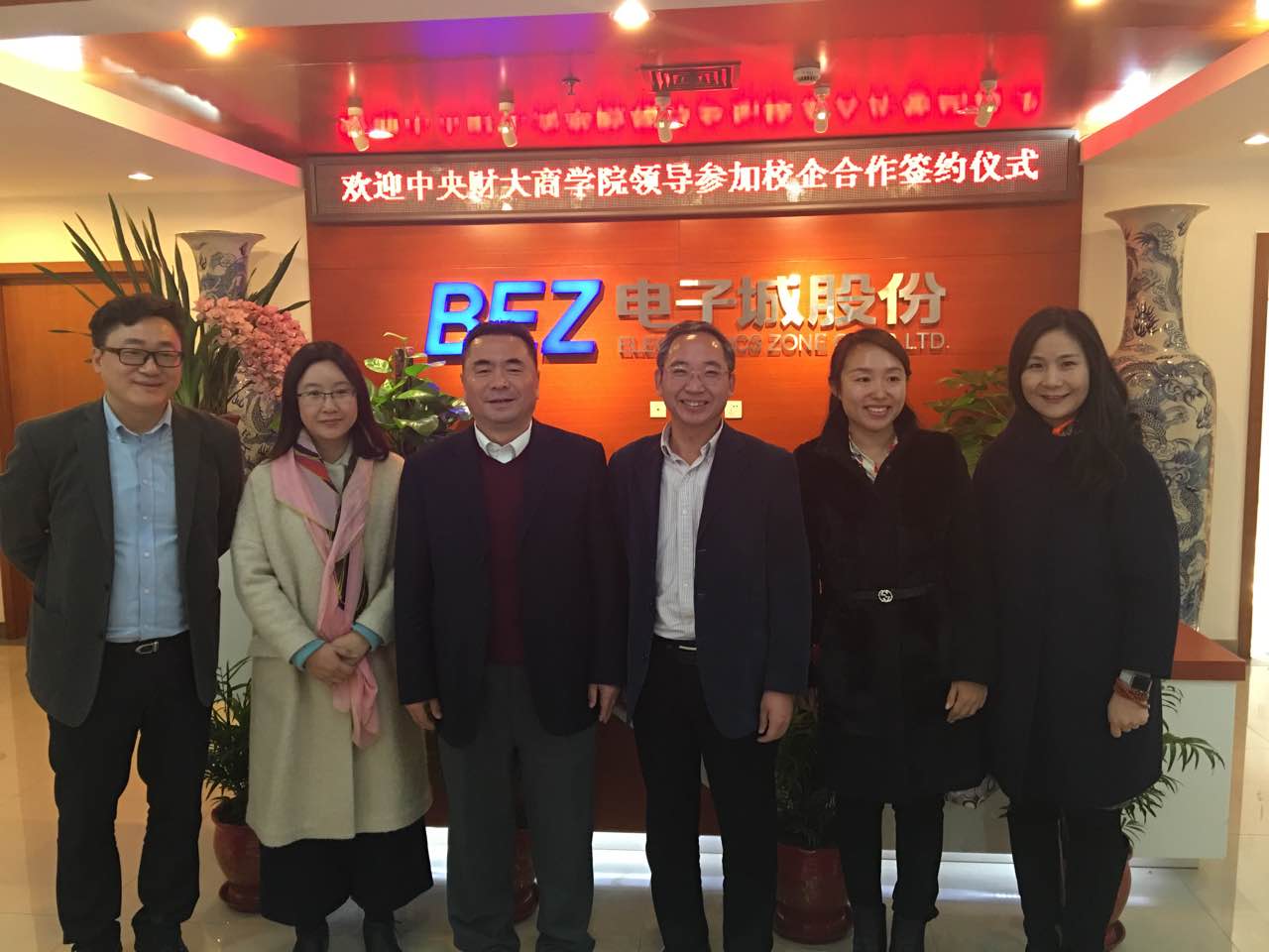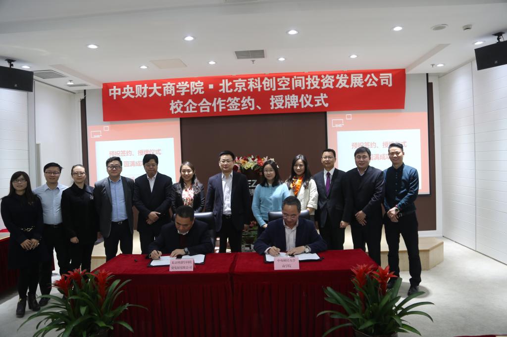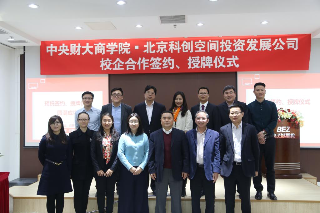 2015年12月18日上午,我校永利23411集团与北京科创空间投资发展有限公司校企合作签约暨授牌仪式在电子城股份6层多功能厅举行。永利23411集团院长兼MBA教育中心主任王瑞华教授、党总支书记葛建新教授、MBA教育中心副主任贾晓菁教授、战略系主任刘小元副教授、MBA教育中心孔伟明、董硕老师以及中财MBA房地产俱乐部主席陈维校友出席了签约授牌仪式;电子城科创空间出席活动的嘉宾主要有北京电子城投资开发股份有限公司总裁兼北京科创空间投资发展有限公司董事长龚晓青、北京电子控股有限责任公司总经理助理、园区地产部部长兼北京科创空间投资发展有限公司董事潘金峰、北京电子城投资开发股份有限公司副总裁兼北京科创空间投资发展有限公司董事张南、北京电子城投资开发股份有限公司副总裁吕延强、北京电子控股有限责任公司园区地产部李斌 、北京科创空间投资发展有限公司总经理王俏梅、行政总监李锐、营销总监刘丽娟等。