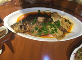 Whether   I   was   dining   at   the   on-­‐campus cafeteria or the local restaurants, there was always at least one thing that caught  me  off  guard,  but then intrigued me. Some of the most memorable menu items include baked turtle, duck blood, and stuffed fish.